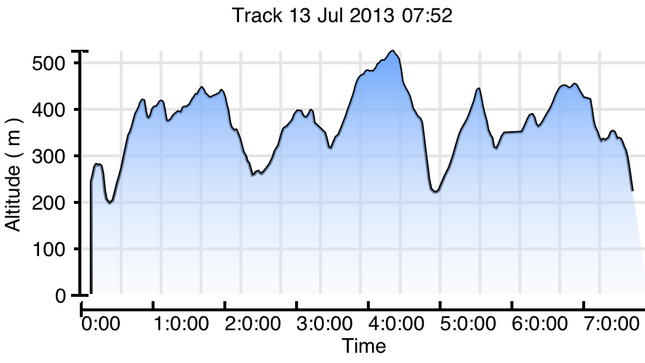 This was a lovely loop with checkpoints on Lost Lad and Ladybower, then a big climb up back to Derwent Edge (see dip at 5hrs on altitude graph!).