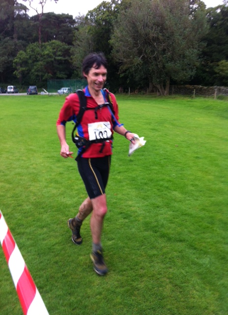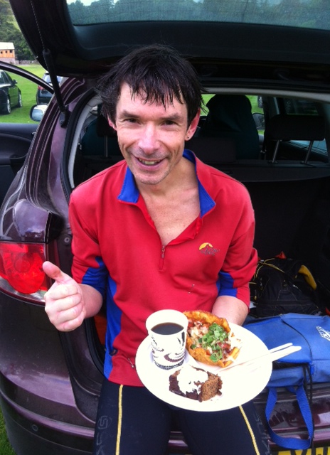 Dave was a creditable 3rd in M50 on the 18-mile Classic race, here he is finishing & enjoying his free post-race meal from Podium Catering.